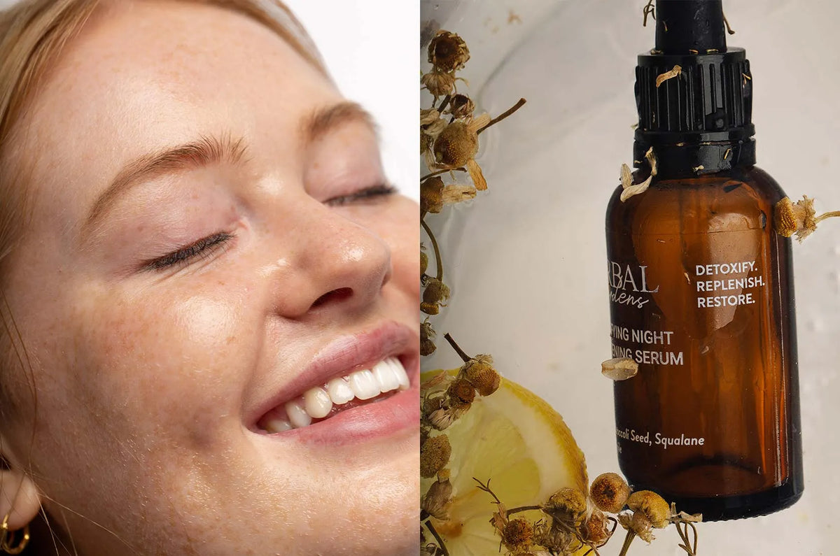 You can use Detoxifying Night Brightening Serum from Herbal Gardens, which helps combat dryness and reduces inflammation and redness in the skin.